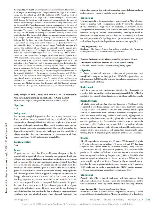 gMG is a rare, chronic autoimmune disorder. Key therapeutic approaches differ among the available treatments for AChR-Ab+ gMG, but no studies on patient treatment preferences have been published to date.